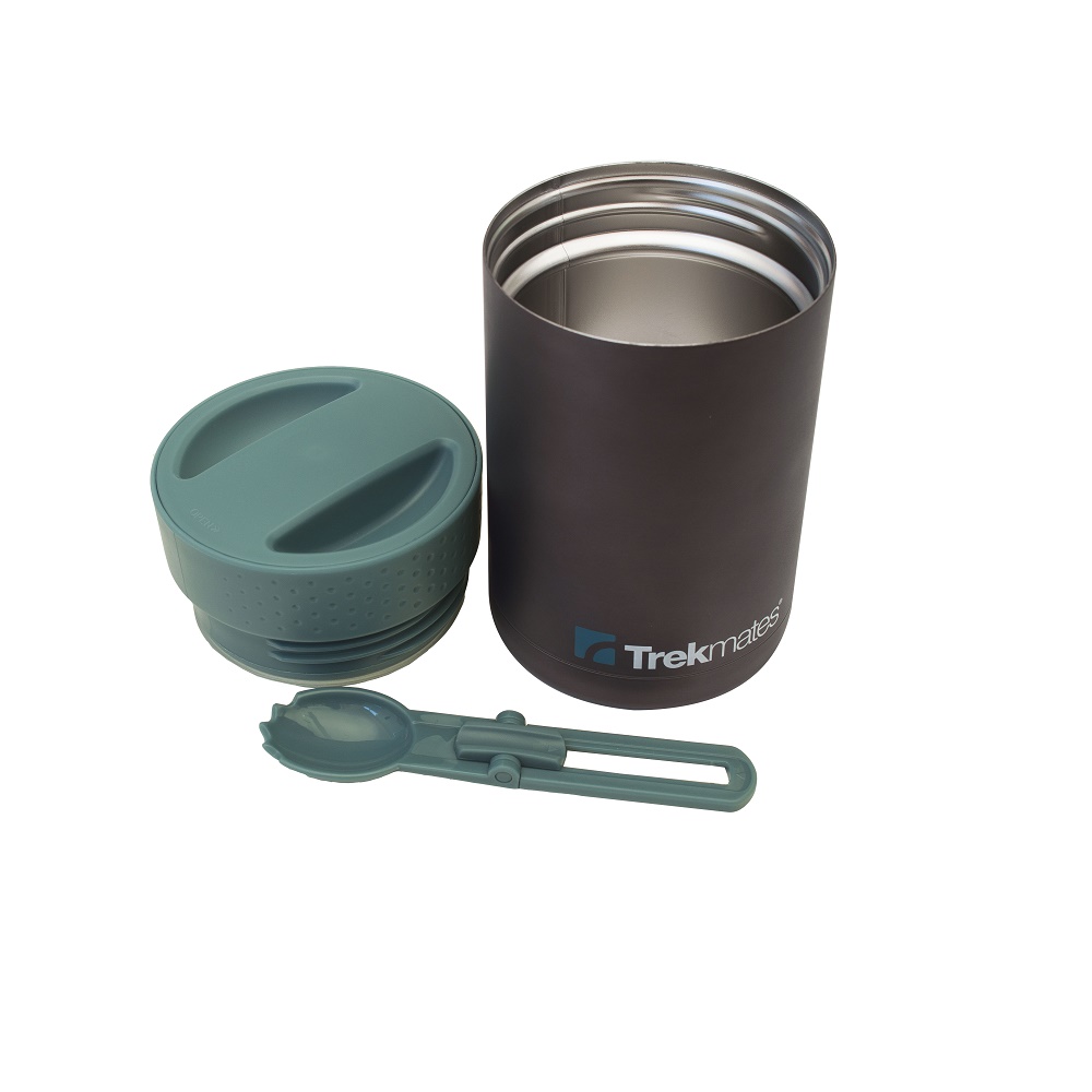 Termoska na jídlo Trekmates 0,5 l + lžíce je praktické outdoorové nádobí. Disponuje dvoustěnnou izolací teploty, takže v ní hlavní jídlo či polévka vydrží mnohem déle teplé. Termoska má dostatečně široké hrdlo na to, aby se z ní pohodlně jedlo. K tomu je určena také outdoorová lžíce z odolného a zdravotně nezávadného plastu. Povrch je matný, což značně usnadňuje jeho údržbu. Termoska na jídlo není vhodná pouze na outdoorové aktivity a sport, ale je skvělým pomocníkem pro ty, kteří si udržují svou tělesnou hmotnost a nosí si s sebou vlastní jídlo do práce, do posilovny atd. Tak odpadá i nutnost ohřívat jídlo v mikrovlnné troubě.