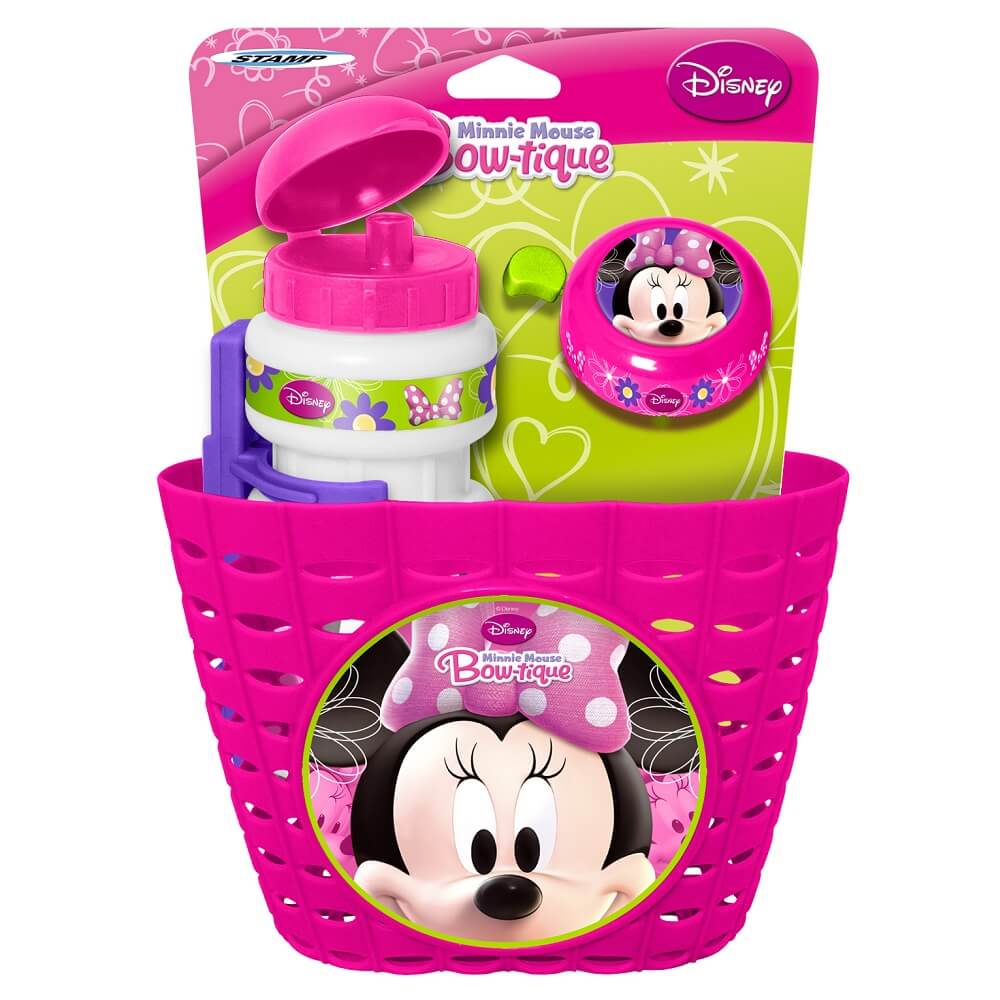 Cyklistická sada Myška Minnie je sada košíku, cyklo lahve a zvonku s atraktivními pohádkovými motivy. Jedná se tedy o neopomenutelnou součást výbavy dětského jízdního kola. Košík a láhev jsou vyrobeny z lehkého, ale odolného plastu. Zvonek je vyroben v kombinaci plastu a kovu. Díky jeho univerzální objímce je snadné ho jednoduše uchytit na všechny typy řidítek. Stylový motiv pohádek Disney z této sady učiní oblíbený doplněk na kolo a rozzáří oči Vaší malé cyklo princezny.