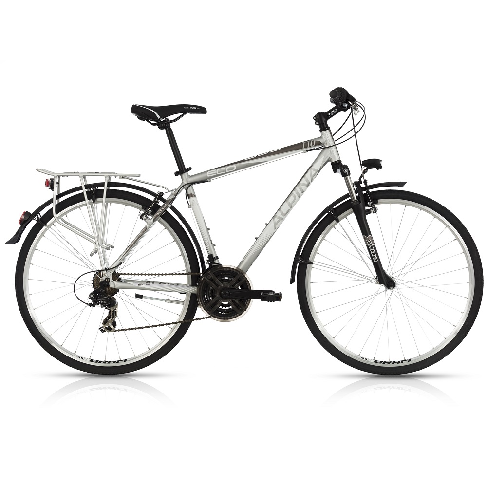 Trekingové kolo ALPINA ECO T10 28'' - model 2017 patří mezi moderní trekingová kola s hliníkovým rámem ze slitiny 6061. Přední odpružená vidlice SR SUNTOUR M3010 se zdvihem 63 mm a APSE Artek V-Brake brzdy zaručují výborné jízdní vlastnosti. Kolo je osazeno kvalitními komponenty a plášti INNOVA 40-622. Největší předností kola je bohatá výbava, naleznete zde přední i zadní osvětlení, pevný zadní nosič, stojan či zvonek. Pokud plánujete jezdit v náročnějších terénech i po asfaltových silnicích, pak je pro Vás trekingové kolo ALPINA ECO T10 28'' ideální volbou.