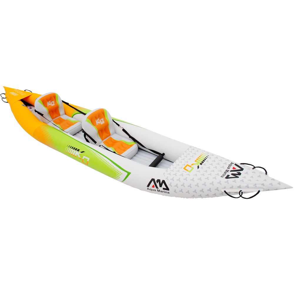 Nafukovací kajak Aqua Marina Betta HM K0 dvoumístný je skvělý rekreační kajak pro každého, kdo se těší na vodu. Je vhodný pro začínající i mírně pokročilé vodáky. Tento kajak klade důraz na dobrou ovladatelnost a rychlost při zachování komfortu a stability. Výborně poslouží na rybnících, jezerech a pomalých řekách. Pro aktivně strávené chvíle s rodinou nebo přáteli je tedy ideální. Nafukovací kajak Aqua Marina Betta HM K0 je vyroben z vyztužené PVC tkaniny, disponuje pohodlným sedadlem s plně nastavitelným opěradlem, opěrou pro nohy a trvanlivou "i-beam" podlahou pro stabilitu. Příď je opatřena ochranou proti vnikající vodě. V neposlední řadě jeho konstrukce v kombinaci s nosností 155 kg poskytuje i dobrou skladovací kapacitu. Díky zapuštěným ventilům lze kajak snadno a rychle nafouknout a vyfouknout za méně než deset minut. Celý kajak pak můžete snadno přenášet v přiložené brašně. V balení nechybí ani nožní pumpa, 2 kajaková pádla či opravná sada.