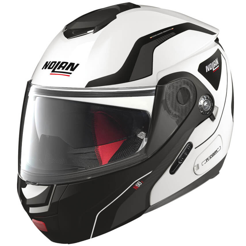Moto helma Nolan N90-2 Straton je cenově dostupným modelem s odklápěcí bradovou částí. Dobrou viditelnost zajišťuje široké hledí s ochranou proti poškrábání i proti mlžení. Protimlžnou úpravu je možné dále vylepšit díky systému Pinlock®, který je součástí. Ochranu před ostrým sluncem zase zajistí integrovaná sluneční clona. Otevírání je realizováno kvalitním systémem Dual Action, který zamezuje nechtěnému otevření. Jezdit je možné i s odklopenou bradovou částí díky homologaci typu P/J, avšak vzhledem k vyšší bezpečnosti doporučuje výrobce jezdit pouze se sklopenou bradovou částí. Ke komfortní jízdě slouží kvalitní větrání a právě tomu byla věnována pozornost při vývoji. Vstupy vzduchu se nacházejí v bradové části i na čele a ohřátý vzduch je odváděn otvory v zadní části. Zapínání je vyřešeno přezkou se systémem Microlock2, je malé a dobře se ovládá.