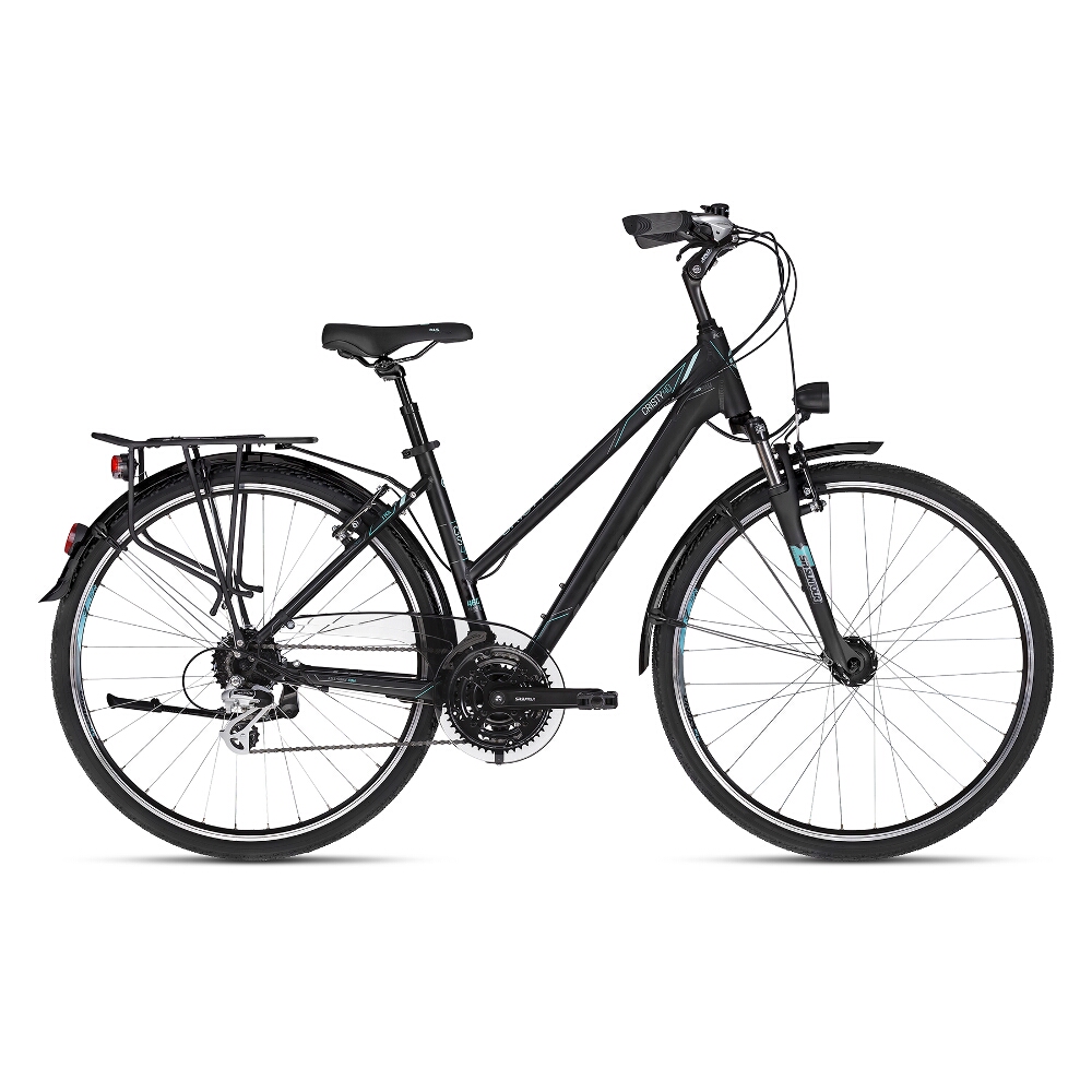 Dámské trekingové kolo KELLYS Cristy 40 je kvalitní kolo s odlehčeným hliníkovým rámem Kellys Tour Profile Lady zaměřeným na pohodlný vzpřímený posed, který zaručuje vyšší komfort jízdy. Přední odpružená vidlice SR SUNTOUR M3010 se zdvihem 50 mm, 24 převodů, páčkové řazení a kvalitní brzdy TEKTRO V-brake zaručují výborné jízdní vlastnosti. Trekingové kolo KELLYS Cristy 40 je opatřeno řadou funkčních a bezpečnostních prvků jako jsou blatníky, zadní nosič, přední a zadní světlo, kryt řetězu či stojan. Kolo je navíc osazeno kvalitními komponenty značek Shimano a Kellys. Díky tomuto vybavení a výborným vlastnostem patří dámské trekingové kolo KELLYS Cristy 40 mezi pohodlná jízdní kola pro běžnou jízdu a na výlety.