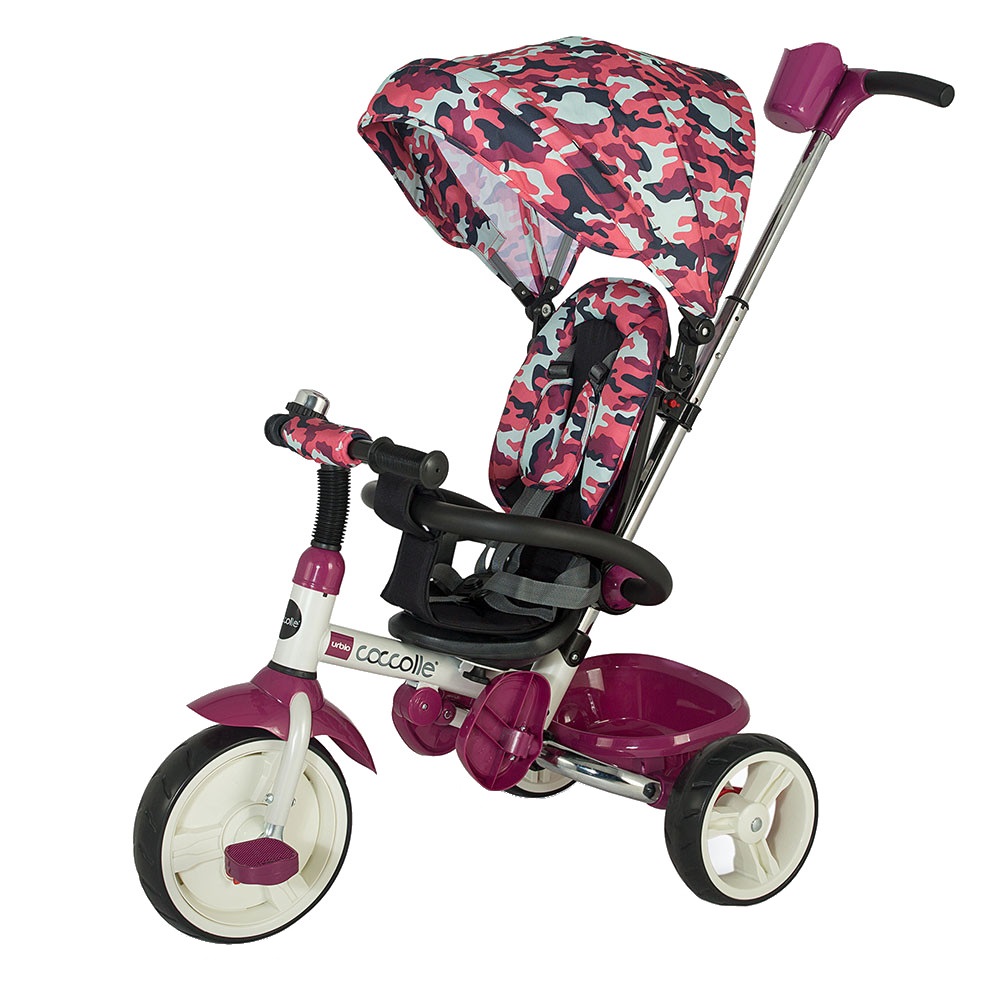 Dětská tříkolka s vodící tyčí Coccolle Urbio Army je jedinečný multifunkční dopravní prostředek vhodný pro děti od 9 měsíců věku. Pro ty nejmenší nalezne využití v podobě kočárku s polohovatelným opěradlem, odnímatelnou a sklopitelnou stříškou a pětibodovým bezpečnostním pásem. V tomto režimu si dítě může nohy pohodlně odložit na sklopitelné opěrky. Tříkolku bezpečně a bez potíží ovládáte teleskopickou vodící tyčí s nastavitelnou délkou a držákem na lahev. K dispozici je Vám i praktický odkládací prostor, kam můžete uložit nákup, věci potřebné pro dítě nebo hračky, bez kterých se Vaše ratolest jistě také neobejde. Jakmile je dítě starší, stačí stříšku a ochrannou konstrukci s opěrkami odejmout a vytvoříte tak plnohodnotnou tříkolku. Vodící tyč můžete dle svého uvážení na tříkolce ponechat a své dítě tak hlídat, dokud si nebudete jistí, že jízdu zvládne samo. Dětská tříkolka Coccolle Urbio Army má opravdu široké možnosti využití a vydrží v různých formách dětem po dobu několika let.
