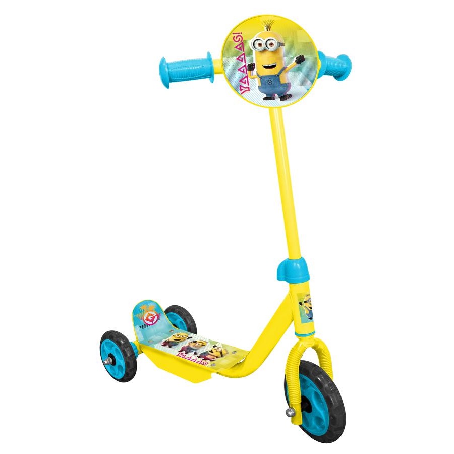Dětská trojkoloběžka Mimoni Yaaas! je stabilní a bezpečná koloběžka se třemi koly zajišťujícími rovnováhu. Jedná se o velmi lehkou koloběžku bez ostrých hran a s prostornou nášlapnou deskou opatřenou neklouzavým povrchem pro maximální bezpečnost. Mimo jiné je i díky výškově nastavitelným řidítkům s pohodlnými madly z PVC tato koloběžka vhodná pro děti od dvou let v závislosti na výšce postavy. Díky cool designu se jedná o perfektní dárek pro každého malého fanouška roztomilých Mimoňů.