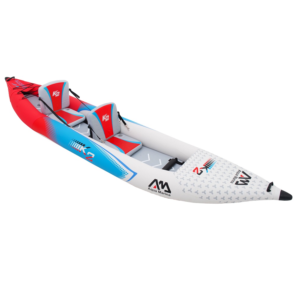 Nafukovací kajak Aqua Marina Betta VT K2 dvoumístný je kvalitní poloprofesionální kajak vhodný pro všechny vodácké nadšence. Je vyrobený z vyztuženého několikavrstvého PVC materiálu, který je velmi pevný a odolný. Při výrobě byl kladen důraz na stabilitu, ovladatelnost, bezpečnost i výkon. Tento kajak tedy využijete jak při rekreační vyjížďce na klidné vodě, tak v divočejších vodách řek či jezer. Sedmnáct ventilů s možností uzavírání se stará o odvod přebytečné vody, a proto je vhodný i pro divokou vodu až do 3. třídy. Předností nafukovacího kajaku je jeho snadná příprava. Jednoduše jej rozbalíte, nafouknete, připevníte sedáky a je připraven k použití. Vyfouknutý kajak nezabere skoro žádné místo a můžete ho bez potíží přenášet v přiložené tašce. Nafukovací kajak Aqua Marina Betta VT K2 je vybaven komfortními nastavitelnými sedáky, dvěma ploutvemi, podpěrkami pro nohy a místem pro odkládání různých drobností s jištěním. V balení naleznete i pumpu a opravnou sadu.