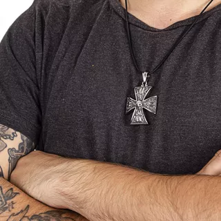 Přívěsek ve tvaru středověkého kříže pro motorkáře, metalisty i okultisty! Stylový ocelový šperk s pečlivě rýsovanými detaily! více