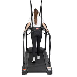 Madla lemují celou běžeckou plochu ve výšce 88 cm od jejího povrchu a najdete na nich také tlačítka pro změnu rychlosti a sklonu plochy. Abyste při chůzi po zranění cvičili co nejbezpečněji, je možné k pásu připnout bezpečnostní popruhy jako dodatečnou oporu během tréninku. Tyto popruhy se zavěšují na strop nebo pevnou konstrukci a při pohybu vás odlehčují a zároveň jistí. S nosností dosahující 180 kg pak stroj pohodlně zvládne i vysokou zátěž.