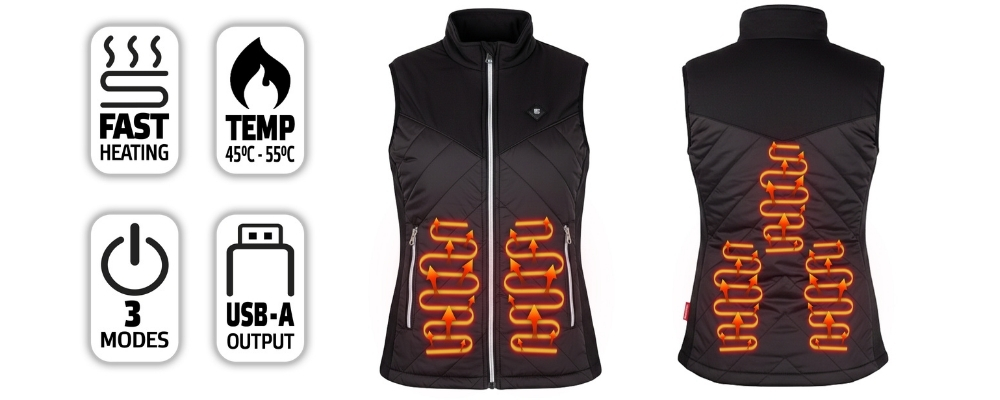 Dámská vyhřívaná vesta inSPORTline WARMher a její rafinovaná vyhřívací technologie Active Heat Core System Vás udrží v teple i v tom nejchladnějším počasí. Vyhřívání obstarávají speciální karbonová vlákna, která jsou umístěna v oblasti břicha, beder a střední části páteře. Krom rovnoměrného rozprostření tepla mají díky vyzařování infračervených paprsků také blahodárné účinky na správnou funkci krevního oběhu.