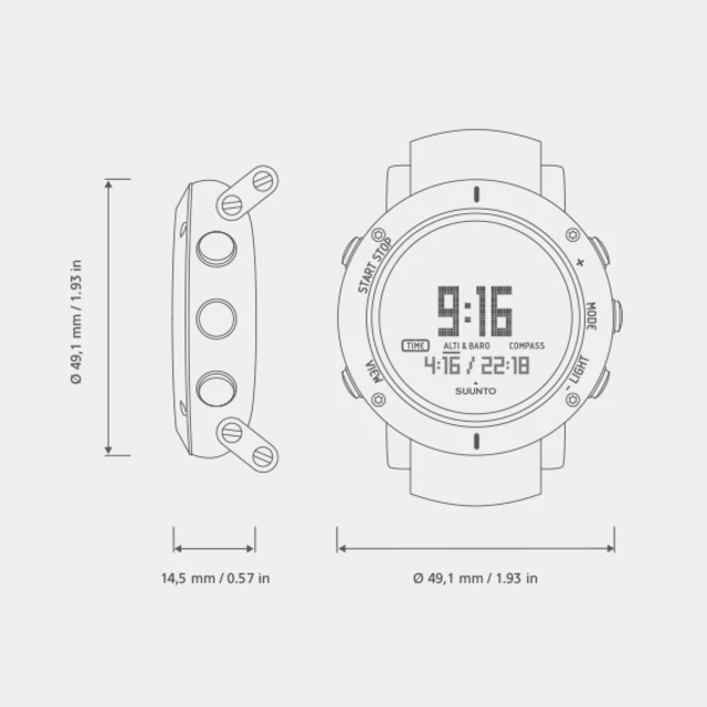 Hodinky Suunto Core Crush jsou špičkové outdoorové hodinky nabízející řadu užitečných funkcí. Funkce altimeter je funkce poskytující měření nadmořské výšky a navíc dokáže zaznamenávat překonané převýšení. Pomocí vestavěného barometru lze zjistit změny tlaku a tendenci počasí. Funkce kompas Vám pak pomůže s orientací v terénu při náročnějších výpravách. Hodinky Suunto Core Crush jsou dále vybaveny hloubkoměrem, stopkami, schopností zobrazování duálního času, časem východu a západu slunce, zámkem tlačítek, menu ve čtyřech jazycích, podsvícením displeje a vodotěsností do hloubky 30 metrů.