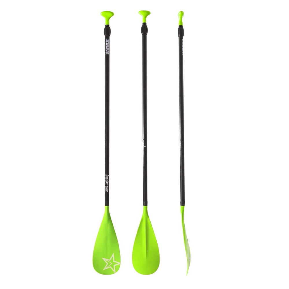Laminátové pádlo JOBE - zelená je určeno pro mírně pokročilé paddleboardisty. Jeho nastavitelná konstrukce umožňuje pádlo libovolně nastavit dle potřeby. Rovněž lze po rozložení pádlo přibalit do batohů dodávaným k nafukovacím paddleboardům. Na konci je pádlo opatřeno madlem ve tvaru "T" pro co nejpohodlnější držení. Laminátové pádlo se svou hmotností 940 g patří k těm lehčím a díky jeho tvaru je pádlování velmi stabilní a pohodlné. Proto je také oblíbenou volbou k nafukovacím paddleboardům.