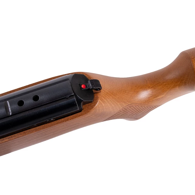 Na hlavni najdete sportovní mířidla s výškově i stranově nastavitelným hledím. Pažba je vyrobena z krásného bukového dřeva a díky drážkování na boku se dobře drží. Při střelbě vás pak jistí automatická pojistka.