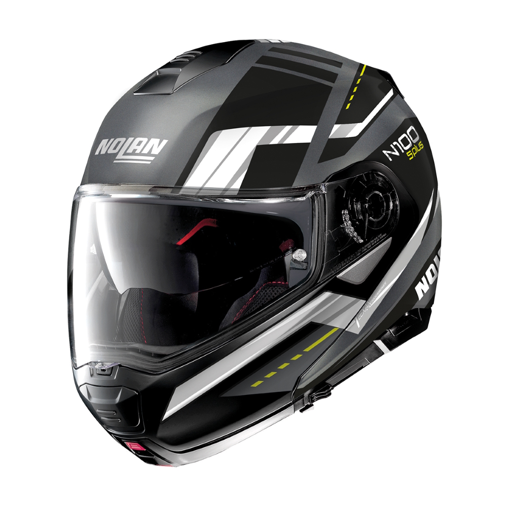 N100-5 Plus je oblíbená verze výklopné helmy od značky Nolan. Technologická propracovanost a inovace je doprovázena sportovně elegantním vzhledem. Helma má dvojí P/J homologaci, takže v silničním provozu ji můžete použít buď s otevřeným bradovým chráničem (konfigurace J) nebo s uzavřeným (konfigurace P). Je skvěle vyvážená a plná výbavy v maximálním komfortu pro dlouhé cestování. Homologace je pro značku Nolan pouze odrazovou metou v bezpečnosti svých helem, jelikož její helmy několikanásobně převyšují homologační minima udané normou ECE 22.05/06.