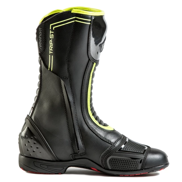 Moto boty Rebelhorn Trip ST CE jsou skvělé vysoké boty určené pro rychlé i touringové jízdy. Dynamický design a živé barvy budou zdůrazňovat váš styl. Nejvyšší stupeň ochrany a odolnost bot zajišťuje především robustní ochrana paty a vyměnitelné slidery. Dále disponují zesílenou špičkou a ochranou vrstvou v oblasti řadičky. Použité dvojité a trojité švy ještě více zvyšují pevnost a odolnost.