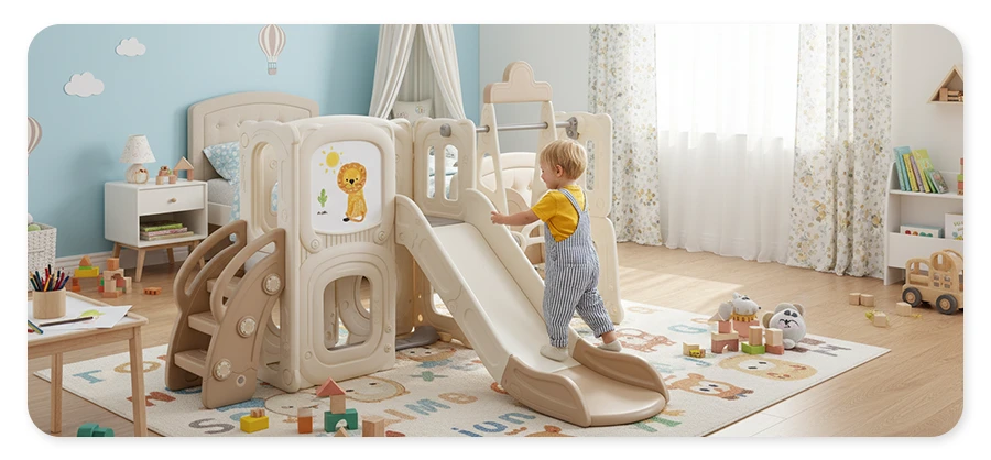 Tato interiérová prolézačka se skluzavkou je vytvořená s ohledem na maximální bezpečí vašich dětí. Nenajdete žádné ostré hrany nebo rohy. Pád nehrozí díky povrchu s protiskluzovou úpravou a ochrannými bočnicemi.
