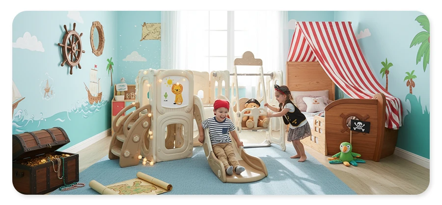 Velká skluzavka, houpačka, tabule na kreslení i místo na skrýš – to vše je součástí tohoto skvělého herního systému, který děti nejen zabaví na dlouhé hodiny, ale také podpoří jejich přirozený vývoj.