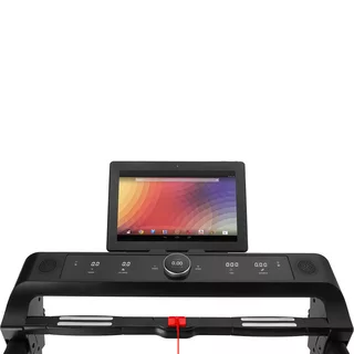 Na ovládacím panelu najdete rychlá tlačítka pro jednoduchou změnu rychlosti běžecké plochy. Pomocí otočného tlačítka uprostřed pak nastavujete parametry tréninku a volíte režimy. K dispozici máte hned 16 profilových programů, stejně tak jako možnost nastavit si cílovou hodnotu času, vzdálenosti nebo spálených kalorií.