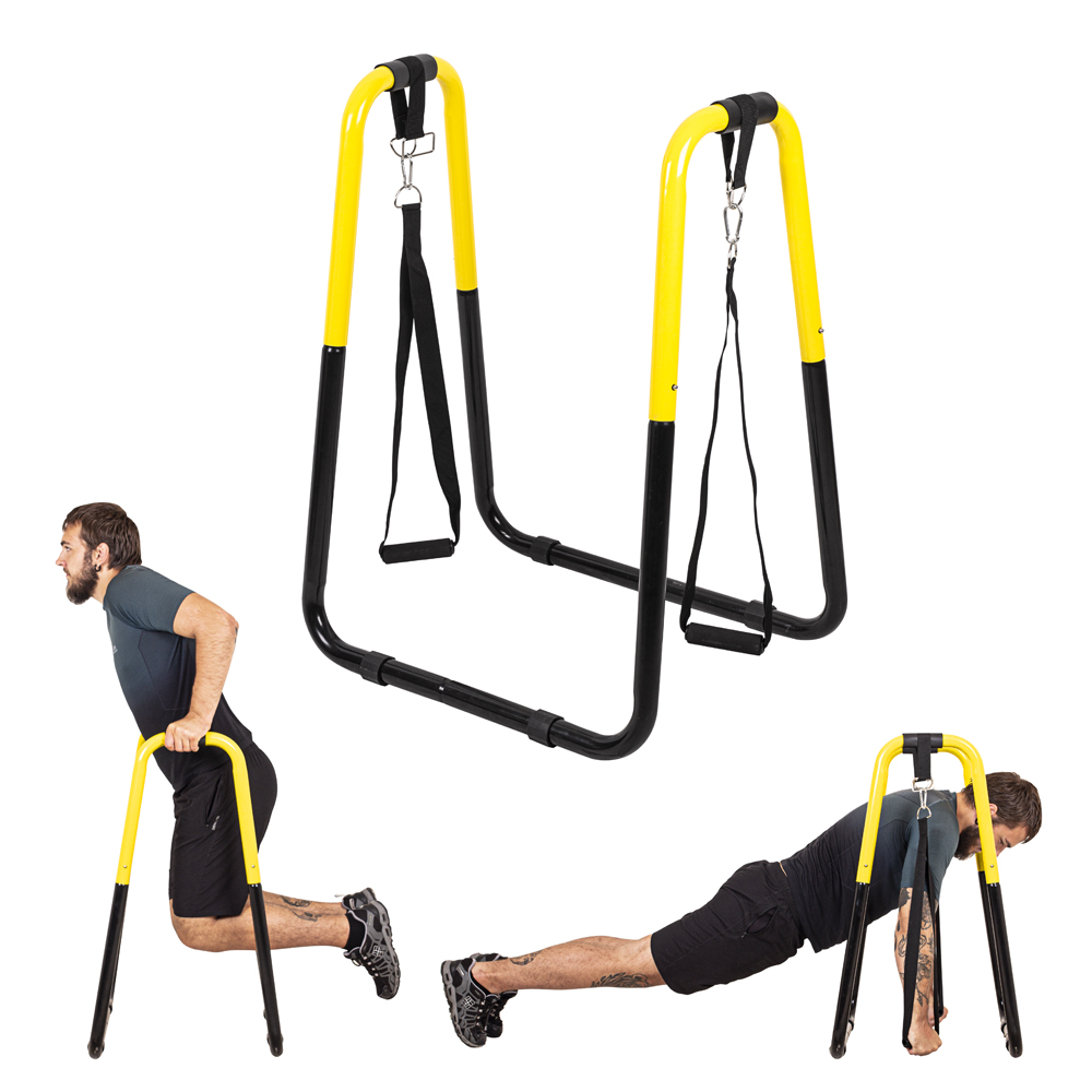 Víceúčelová bradla s popruhy inSPORTline PU1200 jsou lehká, rozložitelná a nezabírají zbytečně místo! Díky unikátní konstrukci můžete při tréninku improvizovat a cvičit několika způsoby. Úchyty jsou stavěné tak, aby mělo vaše tělo během tréninku tu správnou podporu. Bez problému tak můžete střídat kliky a přítahy, případně si překlopit bradla na stranu a použít je jako oporu pro kliky klasické.