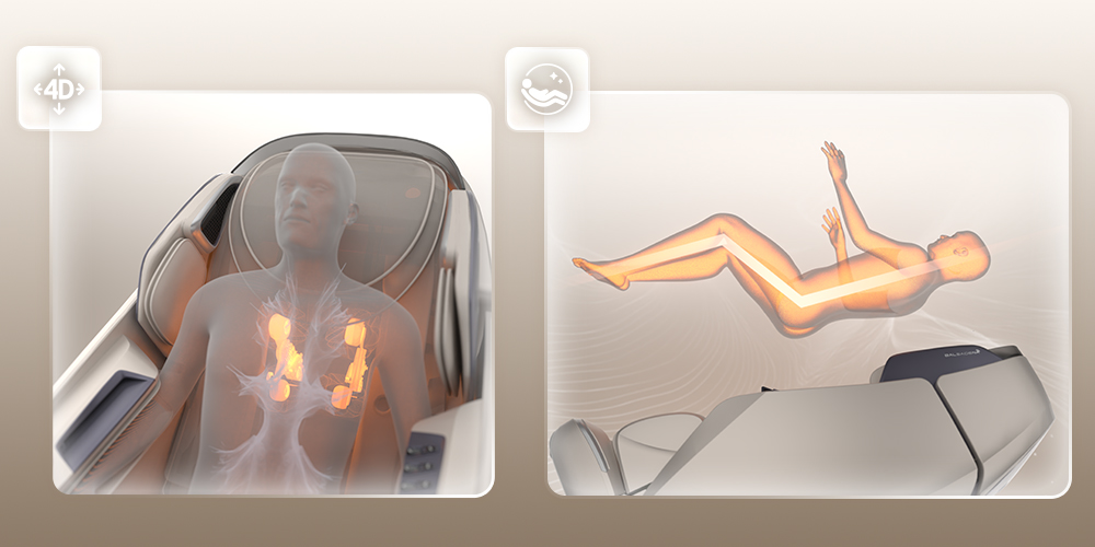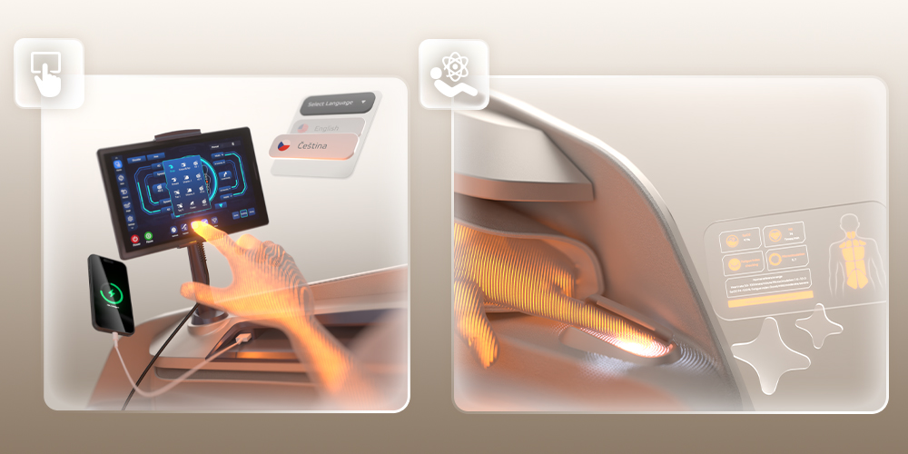 Kombinace 4D masáže, šesti různých technik (včetně Shiatsu, svírání či poklepávání) a celé řady programů vám dopřeje precizní péči přesně tam, kde ji vaše tělo nejvíce potřebuje. Ať už toužíte po jemném uvolnění po náročném dni, nebo po intenzivním promačkání ztuhlých svalů, můžete si vybrat z 20 automatických režimů a několika manuálních nastavení, které přizpůsobíte svým potřebám do posledního detailu. Křeslo se dokonale přizpůsobí tvarům vašeho těla a zajistí plynulý přechod mezi jednotlivými typy masáže.