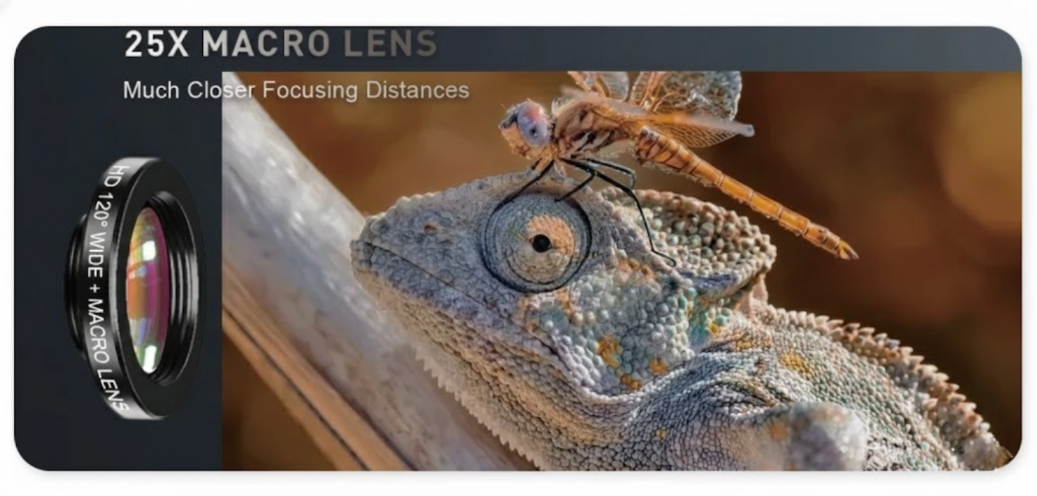 Makro čočka umožní extrémně blízké snímání malých objektů, textur a detailů, které běžný fotoaparát telefonu nezachytí. Ideální pro květiny, hmyz, šperky i produktové detaily. Bohatá kresba a vysoká ostrost umožňují tvořit snímky, které vypadají jako z plnohodnotného makro objektivu.