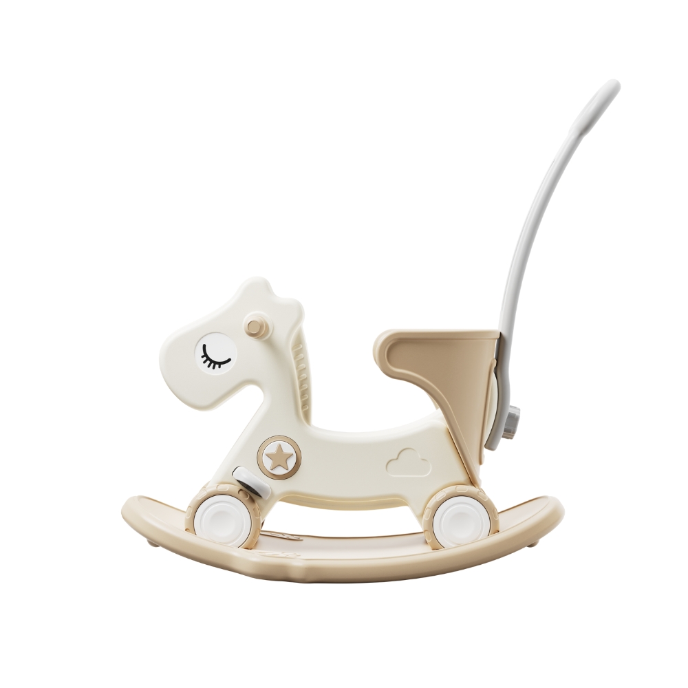 Výprava se nekoná? Nevadí. Chvíli si může zabavit pomocí pískací hvězdičky, která zdobí koníkův krk. Pokud je už ale i na tohle dítě velké, jistě rádo využije spodní část z houpacího koníka, která poslouží jako balanční deska.