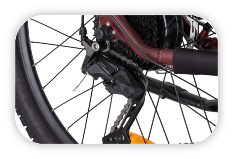Díky systému 1x9 převodů se snadno přizpůsobíte každému povrchu. Převodník Prowheel ZEPHYR spolu s přehazovačkou a řazením Shimano zajišťují rychlou a přesnou změnu převodů, ať už zdoláváte prudký kopec nebo svištíte po lesní cestě