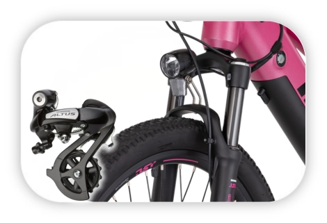 Bezpečnost má vždycky přednost. Hydraulické kotoučové brzdy Shimano MT200 poskytují silný a přesně dávkovatelný brzdný výkon. Ať už jde o rychlé zastavení na stezce nebo kontrolu při jízdě z kopce, kolo reaguje přesně tak, jak jezdec potřebuje.