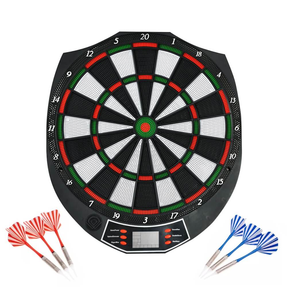 Terč má kvalitní LCD displej s jednoduchým ovládáním. Díky bateriovému napájení jej lze snadno využít i všude tam, kde není dostupný přívod elektrického proudu. Funkce automatického vypnutí a 18 her se 159 herními variantami řadí tento přenosný terč na šipky mezi elitu ve své kategorii.