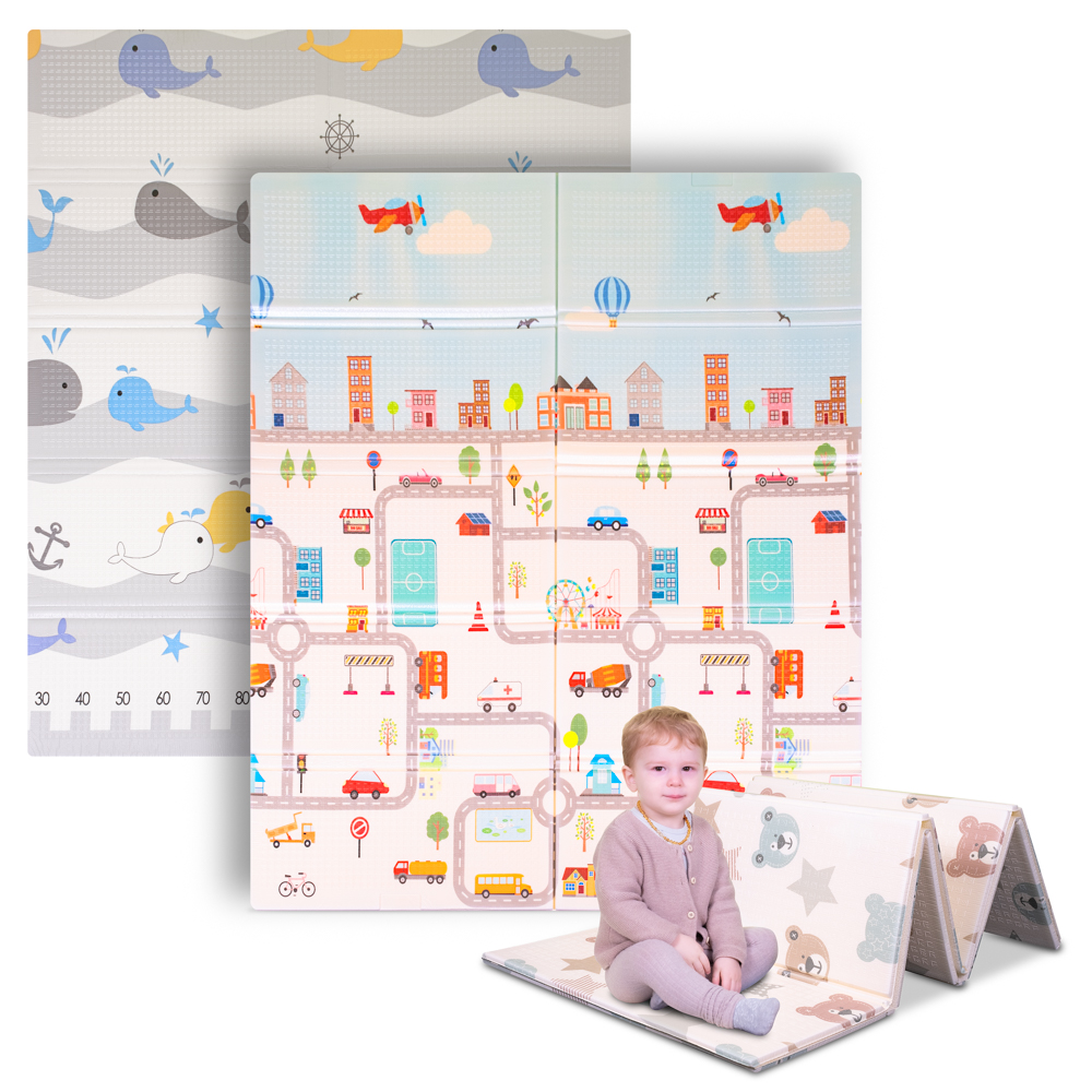 Skládací dětská podložka inSPORTline Michlino 180x160x1,2 cm - 2.jakost - Město/Velryby AKCE