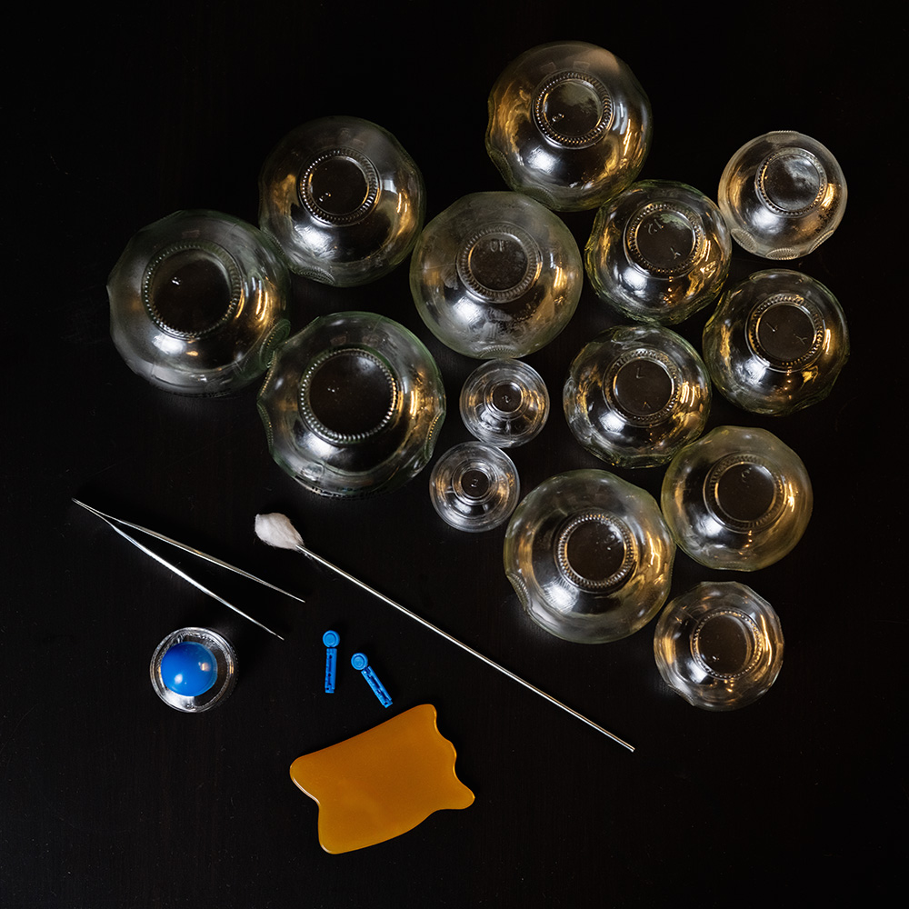 Baňky se na těle nechávají působit 5 - 20 minut, popřípadě se používají přímo k masírování. Pomocí kahánku na líh a tyčinky s vatou pak vytváříte potřebný podtlak. Součástí sady je také menší stěrka pro techniku Gua Sha, která taktéž stimuluje krevní oběh a urychluje látkovou výměnu v těle.